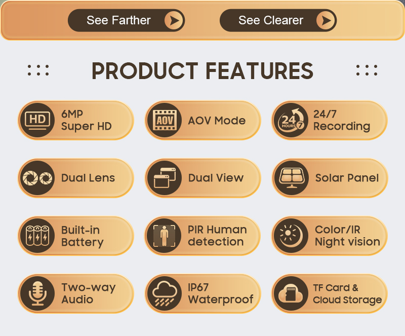• ​Summary : From 24/7 intelligent recording and auto-tracking to ultra-long detection, all-day power, and versatile storage,