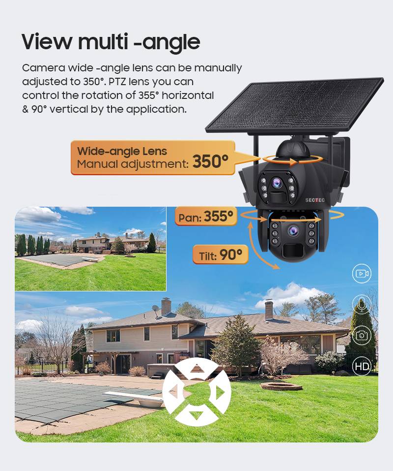 • Featuring a PTZ (pan-tilt-zoom) design with a 355° horizontal + 90° vertical rotation range, it eliminates manual :