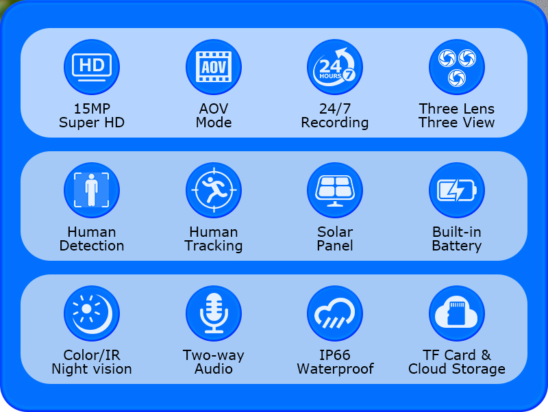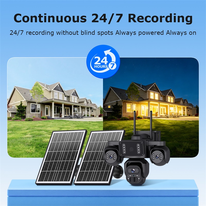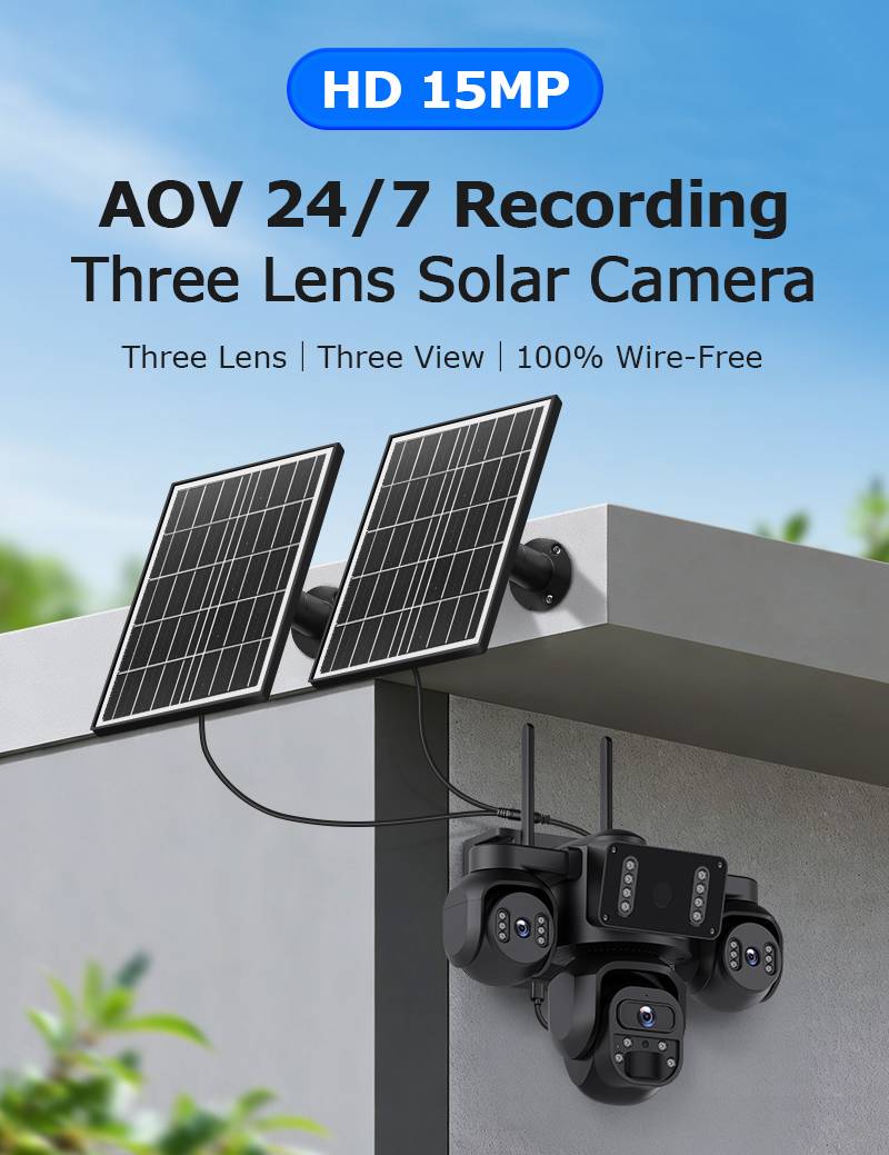 15MP 3 Lens Solar Camera PTZ 4G Battery AOV 24/7 Outdoor Security CCTV Camera
